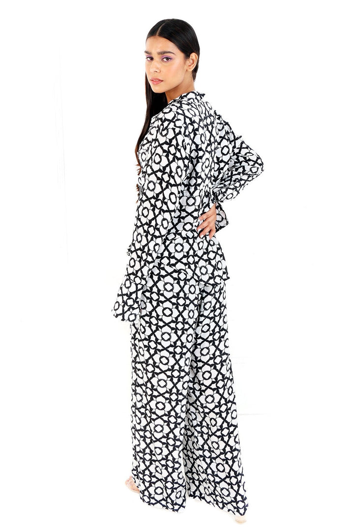 Black Italian Crepe Modal Floral Print Shirt And Pant Set