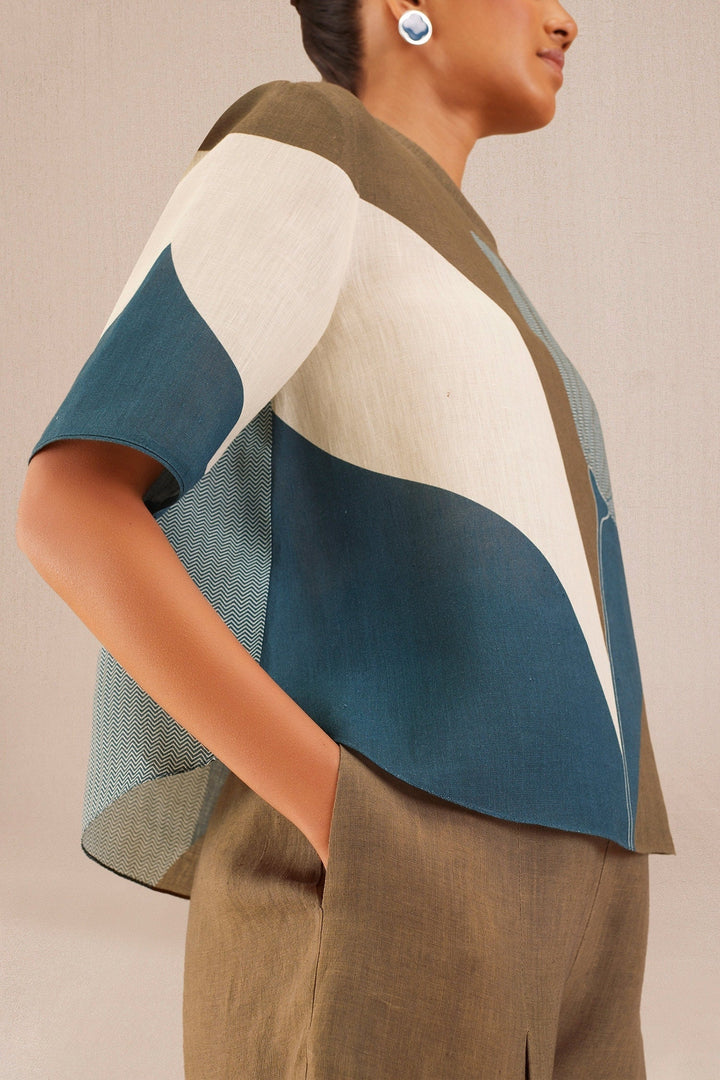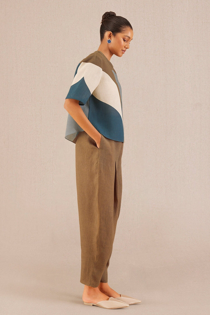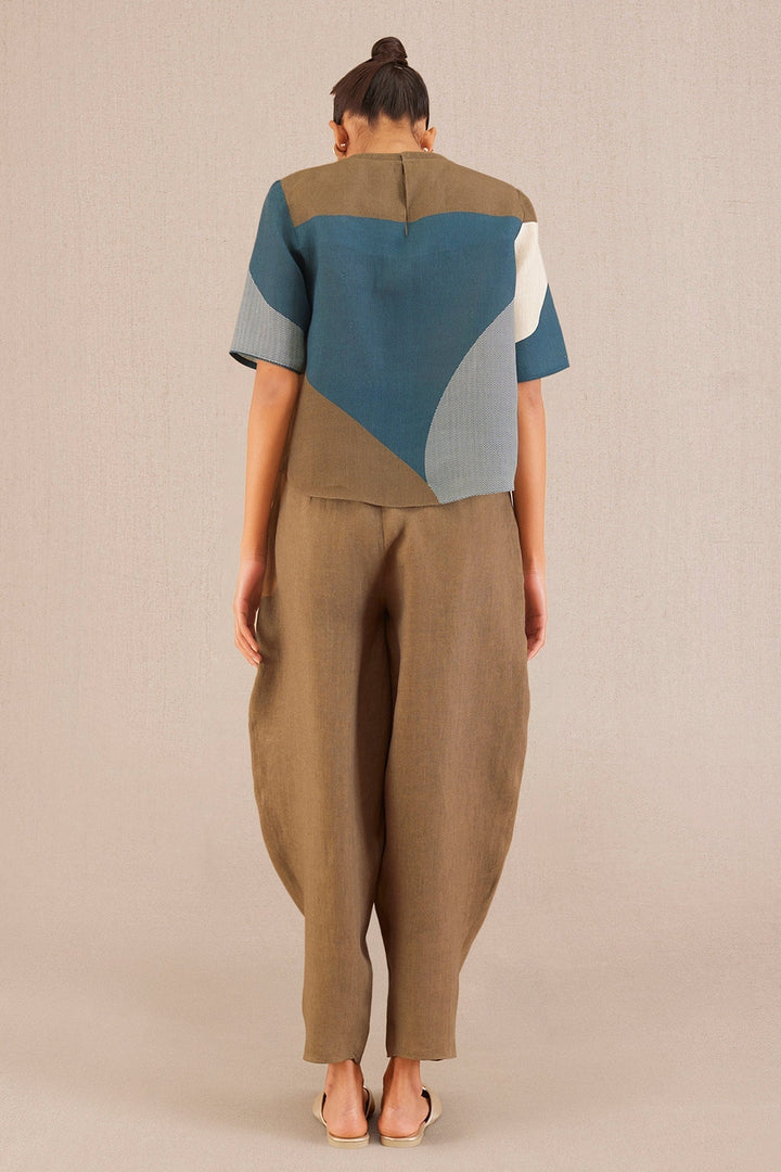 Blue Linen Fluid Round Freya Top With Dhoti Pant For Women