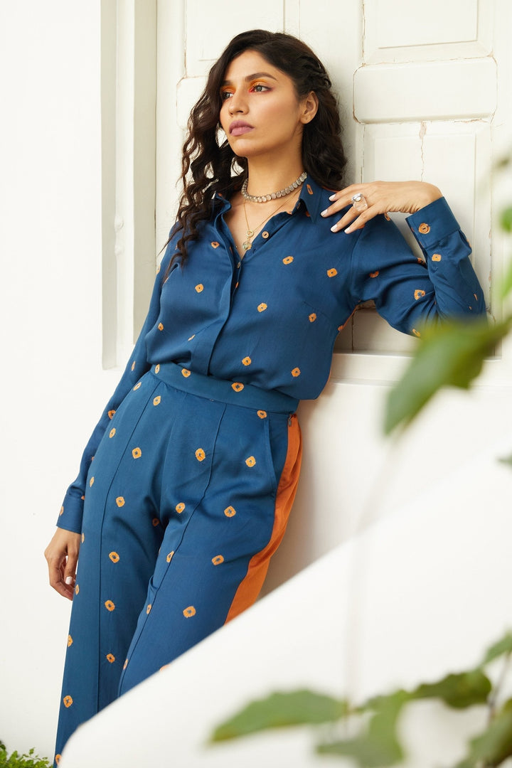 Blue Modal Iris Bandhej Shirt And Pant Set