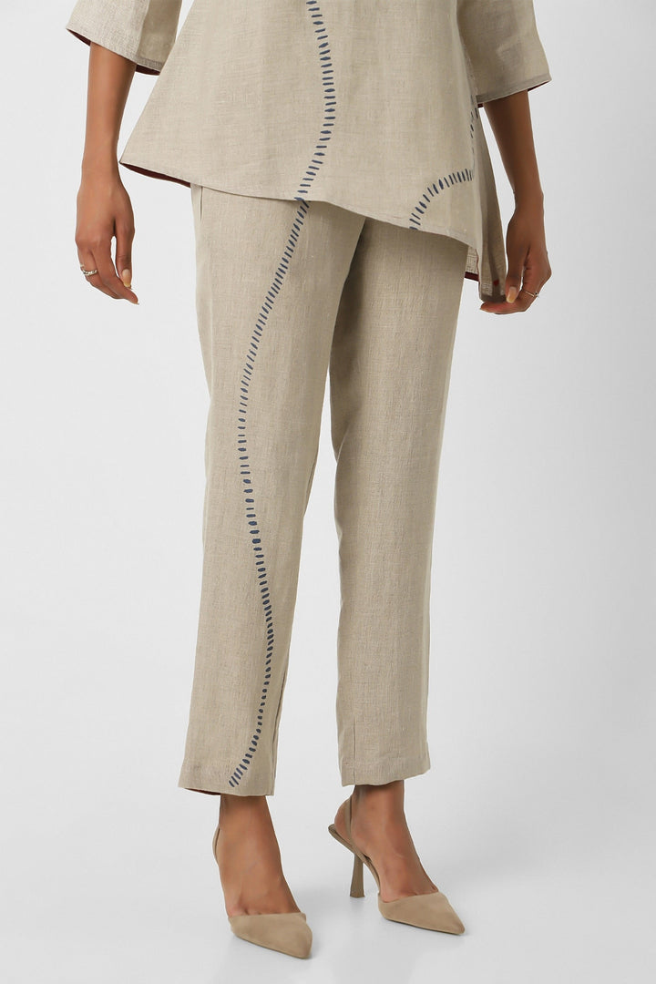 Grey 100% Linen Placement Hand Screen Forest Wiggle Top With Pant