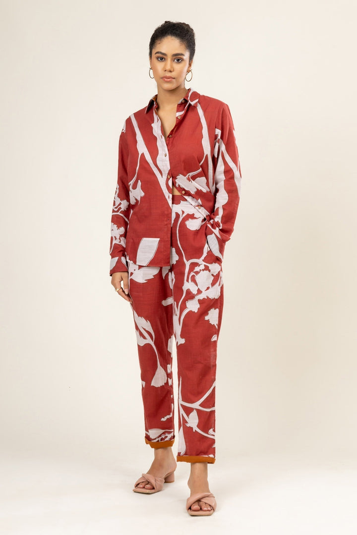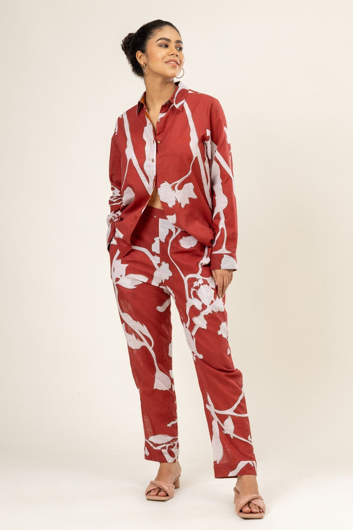 Maroon Upcycled Cotton Canna Bloom Print Shirt With Pant