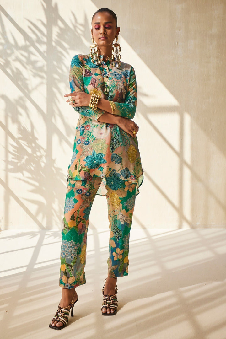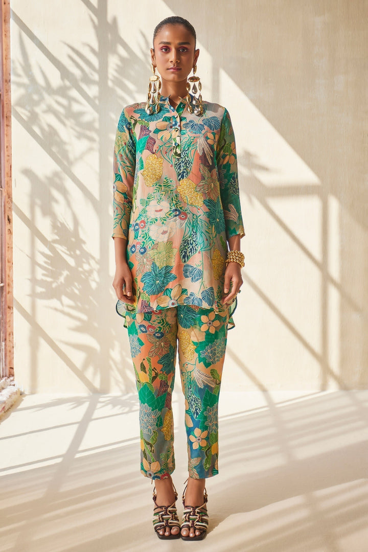 Multicolour top in a abstract floral patterned base. Comes with matching pant.