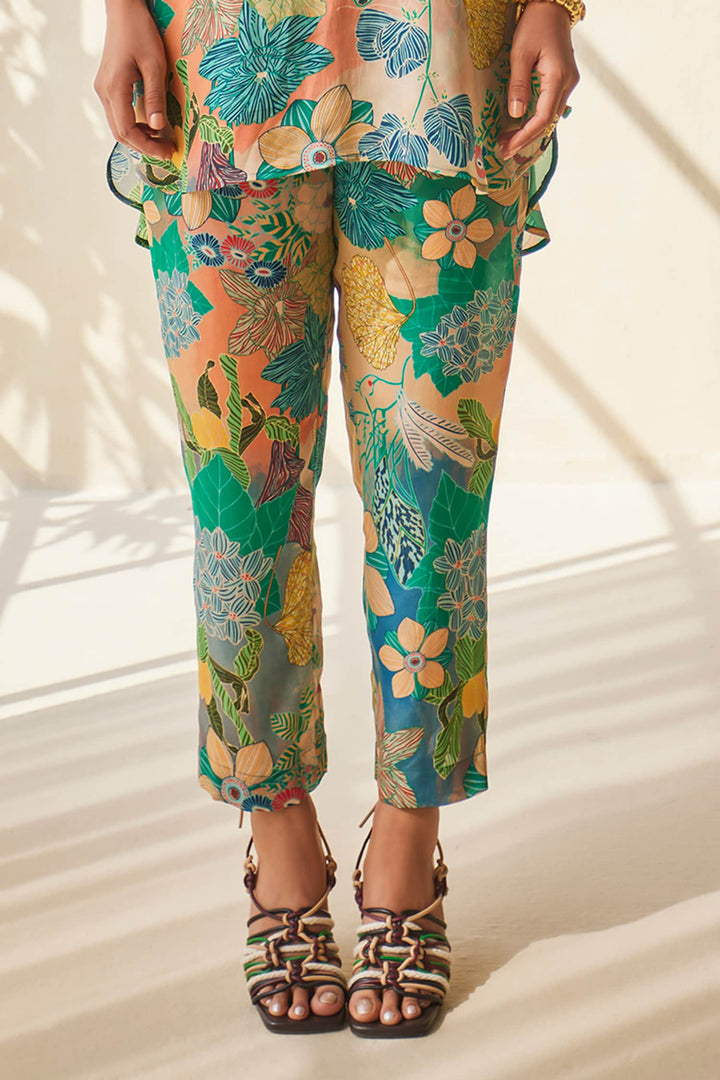 Multi Color Natural Crepe Floral Abstract Pattern Top With Pant For Women