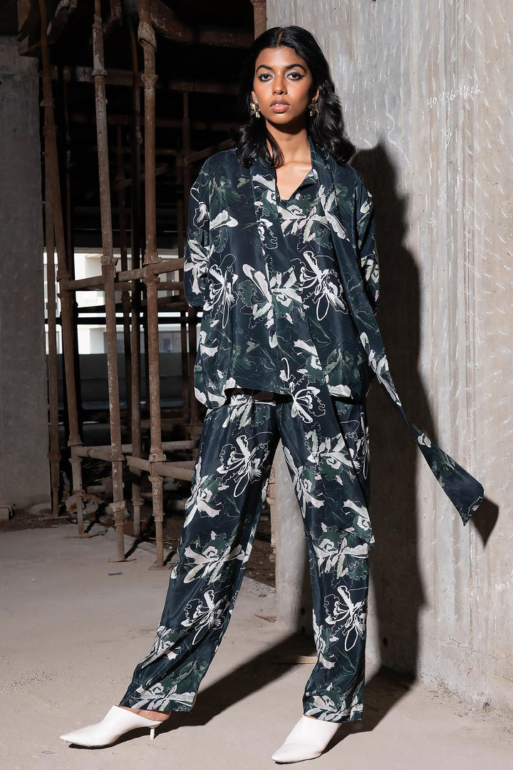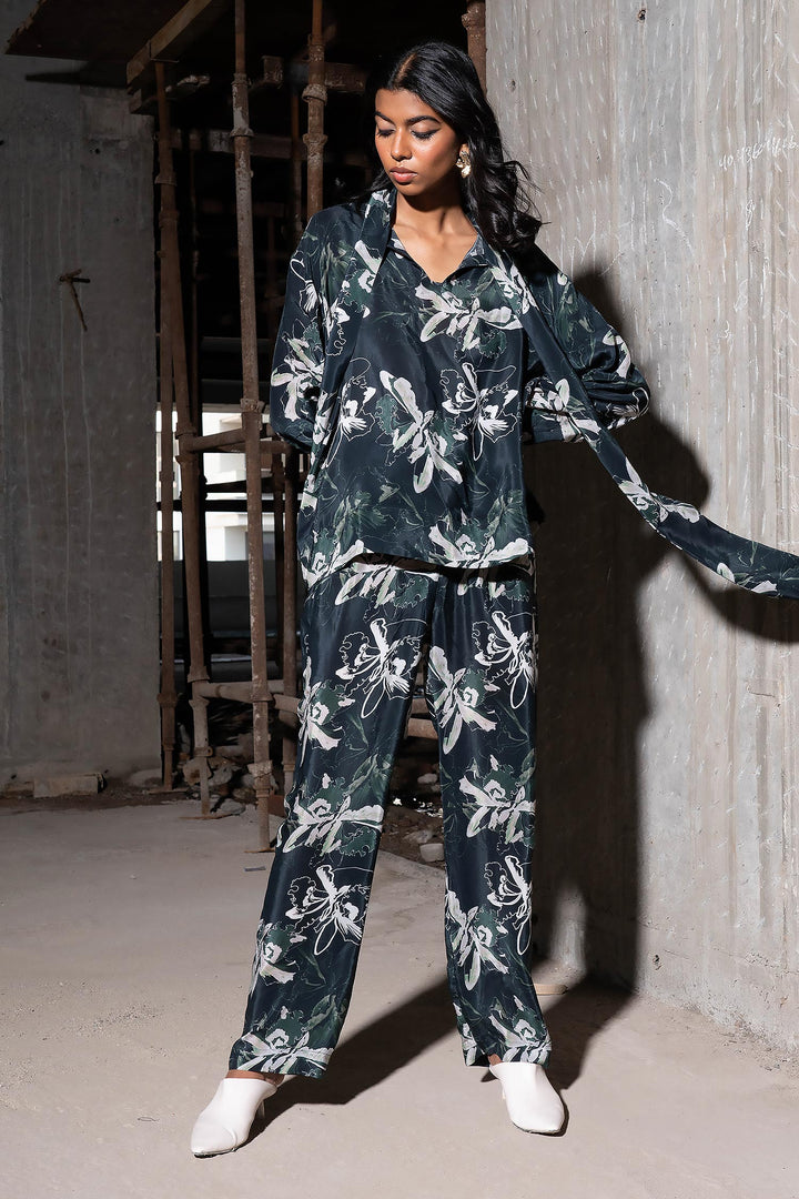 Multi Color Viscose Island Paradise Bow Collar Shirt With Pant