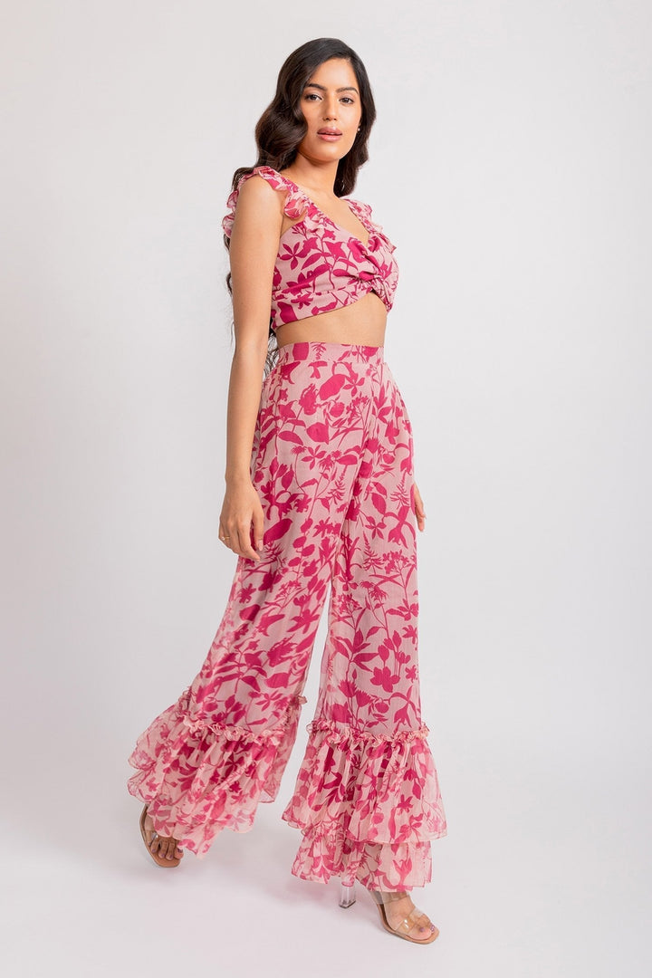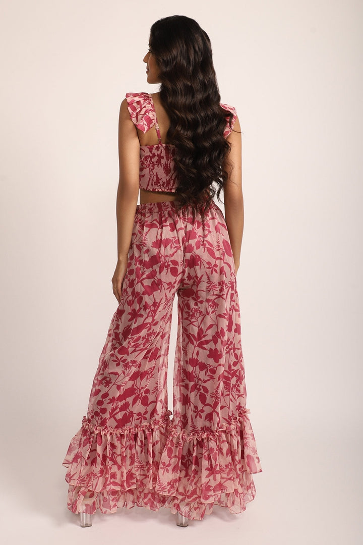 Pink Recycled Chiffon Emma Floral Print Flared Pant Set
